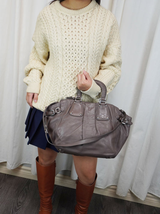 Prada Bambu Soft Calfskin Leather Tote Bag